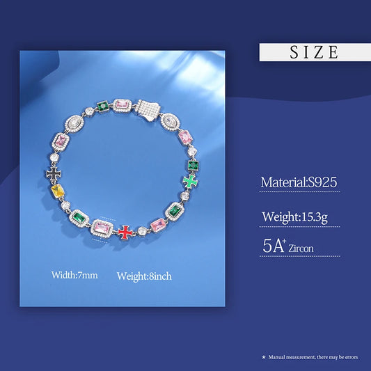 2025 Iced Out Color Moissanite Infinity Cross Chain Bracelet 925 Sterling Silver Hip Hop Luxury Jewelry For Women Men Christmas