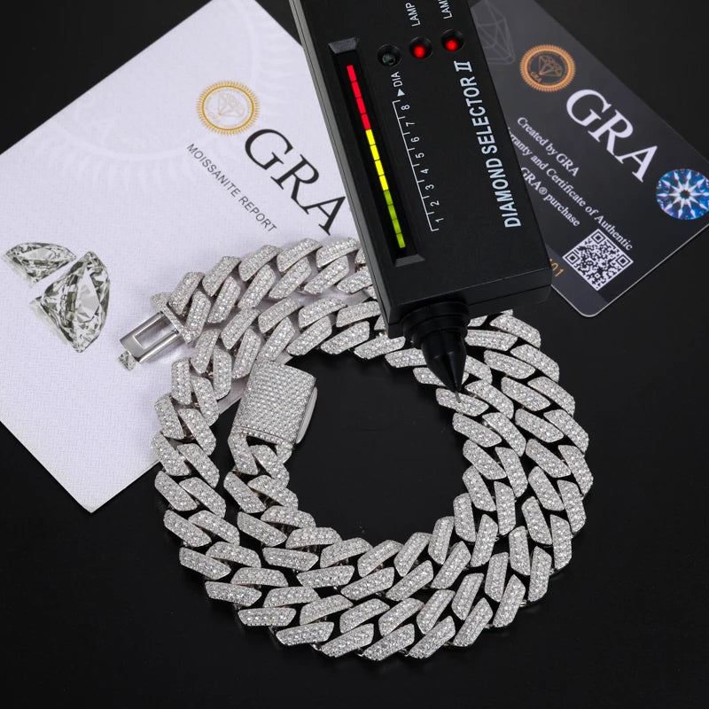 15mm Bling Iced Out Moissanite Heavy Miami Cuban Chain Necklace 100% 925 Sterling Silver Hip Hop Punk Rapper Luxury Jewelry Gift