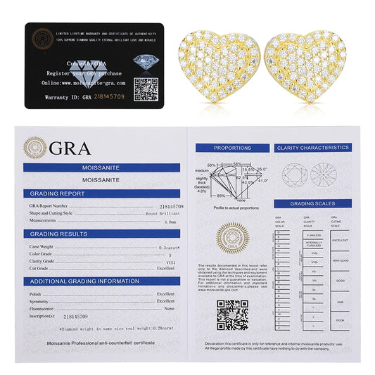 100% Real Moissanite Gemstone Gold Heart Stud Earrings Top 925 Sterling Silver Shining Moissanite Diamond Fashion Jewelry 2021