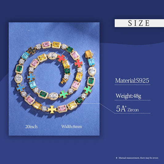 925 Sterling Silver Colorful Luminous Cross Cubic Zircon Necklace For Women Men Hip Hop Fine Jewelry Luxury Party Jewelry Gifts